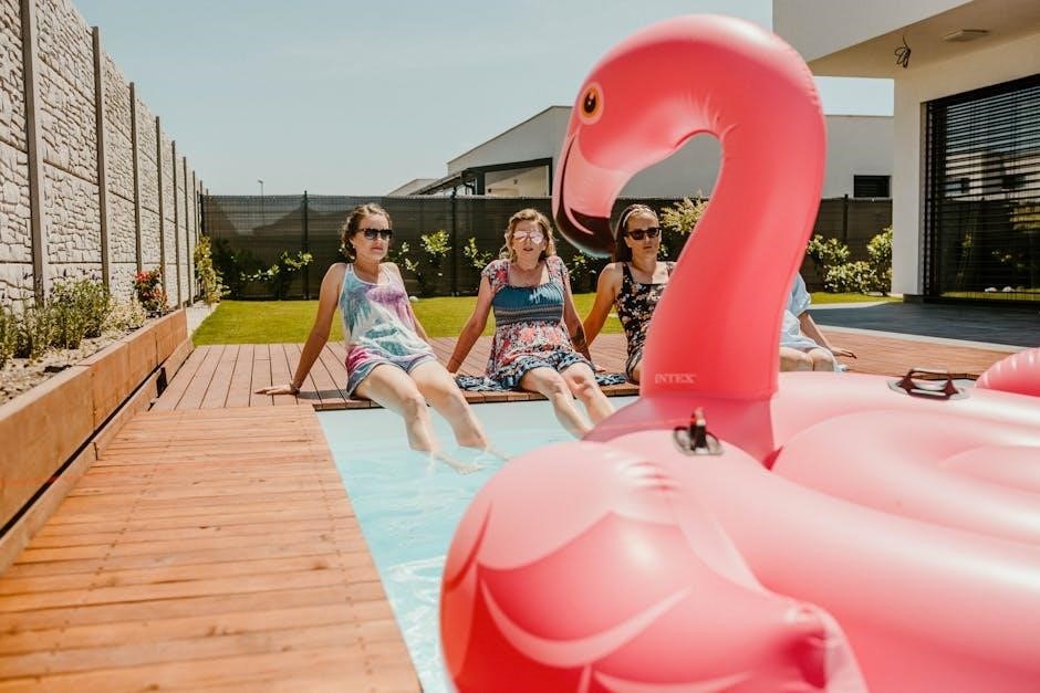 Following the Intex manual PDF’s schedule ensures efficient operation and extends the pump’s lifespan. Always disconnect power before any maintenance, as highlighted in the manual PDF’s safety section.